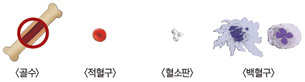 골수는 뼈 속에 있는 스폰지와 같은 조직으로 백혈구, 적혈구, 혈소판과 같은 혈액세포를 만들어 내는 곳입니다.