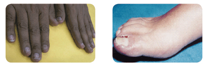 손발톱이 검게 착색되거나 누렇게 변하며 표면에 줄이 생기고 딱딱해질 수있습니다. 손•발톱이 들뜨고, 염증이 생길 수 있습니다. 쉽게 부서지거나 빠지기도 합니다. 따라서 집안일을 할 때는 장갑을 착용하는 것이 좋습니다.