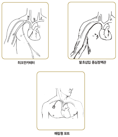 이러한 항암제가 투여되는 경우에는 혈관 상태를 확인 하고, 필요시중심정맥관을 삽입하여 안전하게 투여합니다.