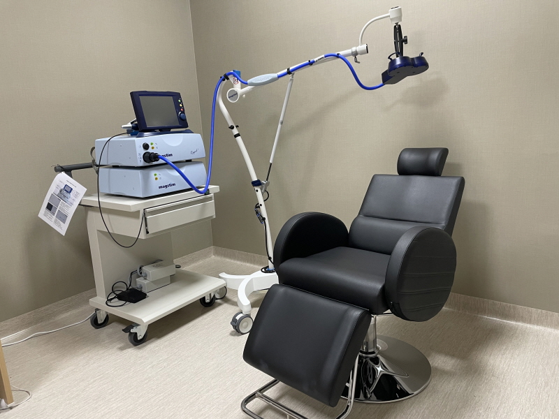 외래에 경두개자기자극술 치료실이 있어 매일 정규적으로 내원하여 시행 받으시면 됩니다.