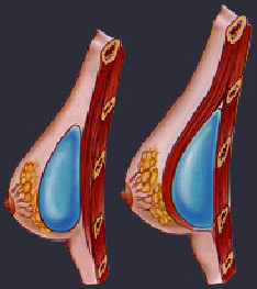 <둥근 모양 유방삽입물(왼쪽), 해부학적 모양 유방삽입물(오른쪽)>