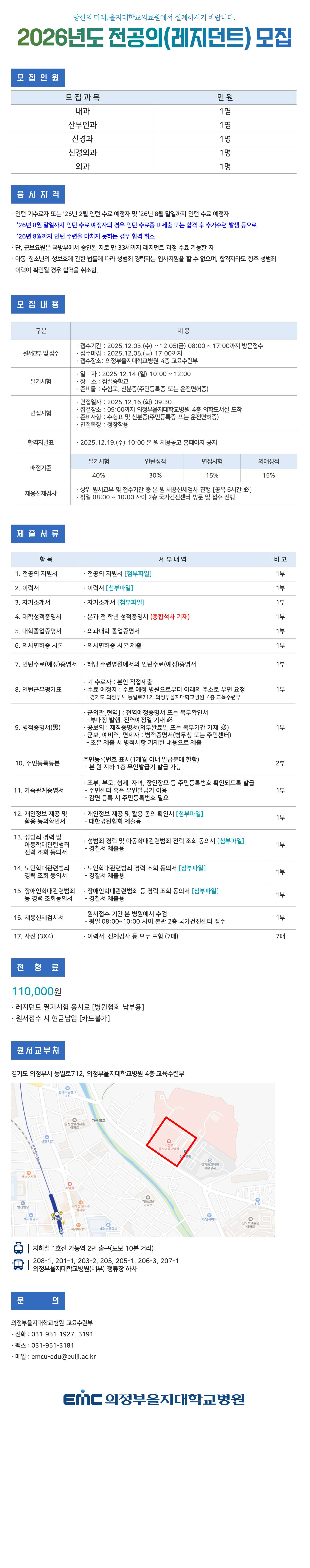 [마감] 2026년도 상반기 전공의(레지던트 1년차) 모집 공고
