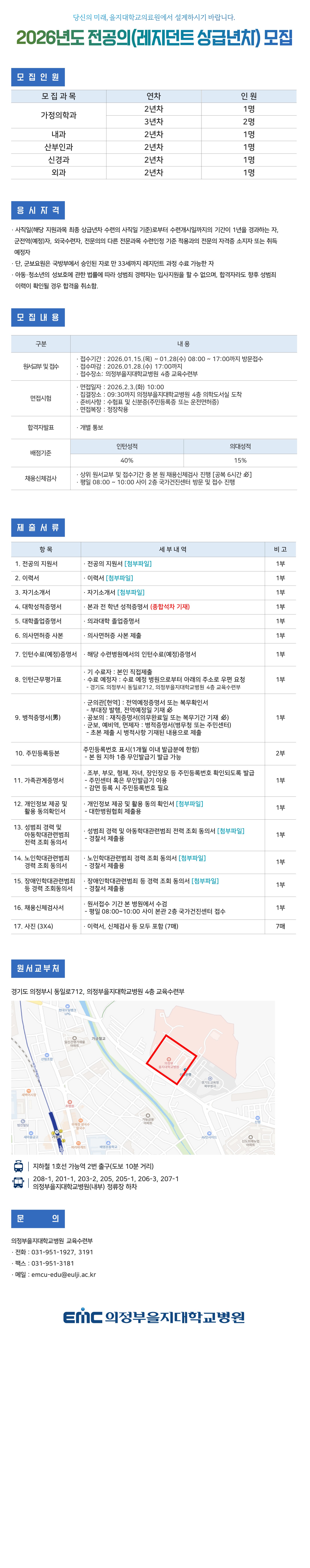 2026년도 전공의(레지던트 상급년차) 모집