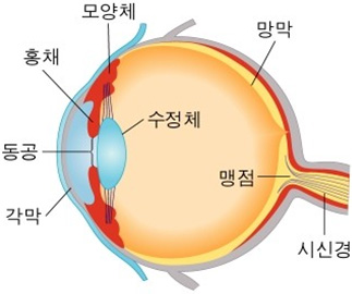 우리 눈의 섬모체(모양체)에서는 적절한 안압을 유지하고, 각막과 수정체에 영양분을 공급하는 방수가 계속 생성되어 방수 배출구를 통해 빠져나갑니다. 만약 이 방수배출구에 이상이 생겨서 방수가 제대로 빠져나가지 못하고 계속 눈속에 고이게 되면 눈의 압력(안압)이 올라가게 되고 시신경이 압박을 받아 망가지게 됩니다.