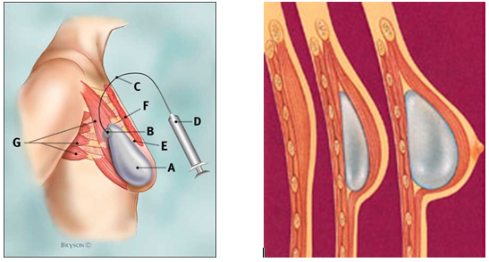 <둥근 모양 유방삽입물(왼쪽), 해부학적 모양 유방삽입물(오른쪽)>