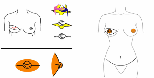 <유륜진피 피판을 이용하여 유두아래의 부족한 조직을 채워주는 수술방법>