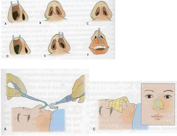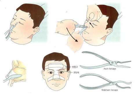 거의 모든 코뼈골절은 기구를 코뼈 밑에 넣어서 상방과 외방으로 올림으로써 환원할 수 있습니다.