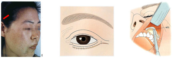 <안와하벽 재건수술시 절개선>